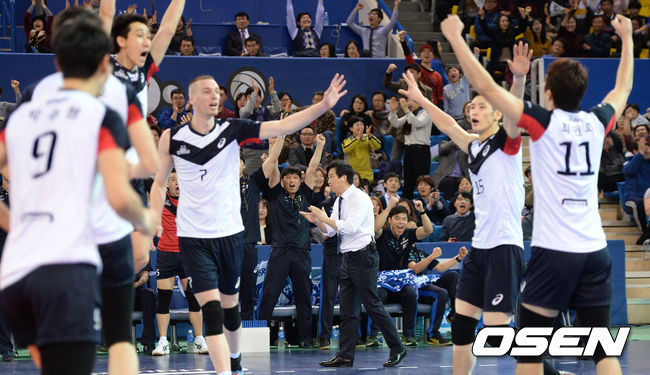 28일 오후 충남 천안 유관순체육관에서 2014-2015 NH농협 V-리그 현대캐피탈과 삼성화재의 경기가 열렸다.