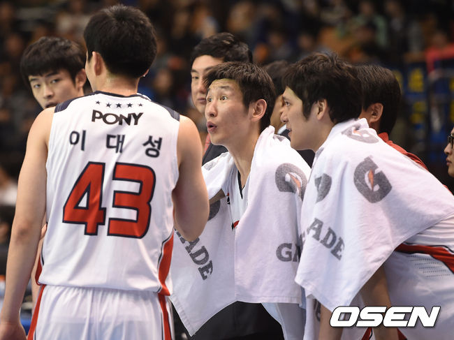 28일 오후 서울 잠실실내체육관서 열린 '2014-2015 KCC프로농구' 서울 삼성과 울산 모비스의 경기, 2쿼터 모비스 양동근이 이대성과 이야기를 나누고 있다.