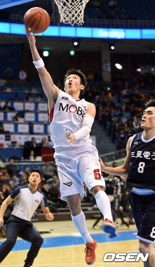 28일 오후 서울 잠실실내체육관서 열린 '2014-2015 KCC프로농구' 서울 삼성과 울산 모비스의 경기,3쿼터 모비스 양동근이 속공에 이어 레이업슛을 성공시키고 있다.