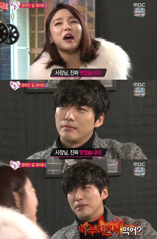 이날 방송에서 두 사람은 경리단길 데이트에 나섰다. 초콜릿 피자 집에 들어간 홍진영은 남자 주인과 대화를 나눴고 이를 본 남궁민은 “다른 남자한테 끼 부리지마”라고 폭발했다.