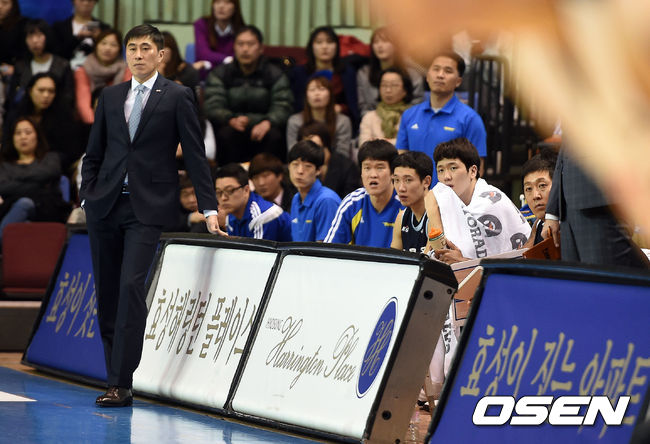 28일 오후 서울 잠실실내체육관서 열린 '2014-2015 KCC프로농구' 서울 삼성과 울산 모비스의 경기,4쿼터 패색이 짙어진 삼성 이상민 감독이 경기를 지켜보고 있다.
