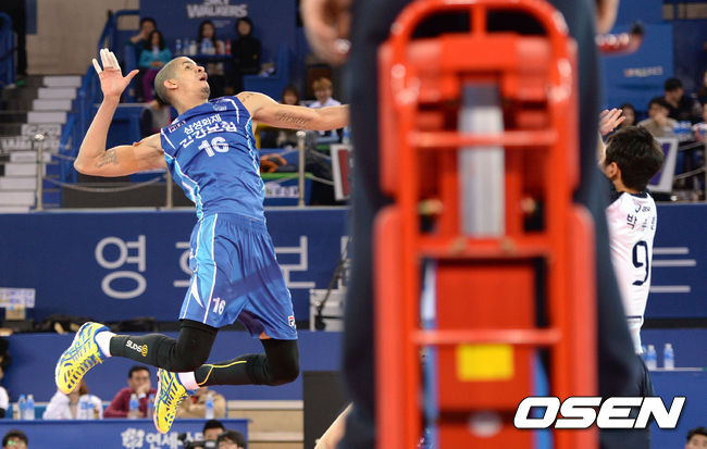5세트 삼성화재 레오가 현대캐피탈의 블로킹 벽을 피해 공격을 시도하고 있다. /sunday@osen.co.kr