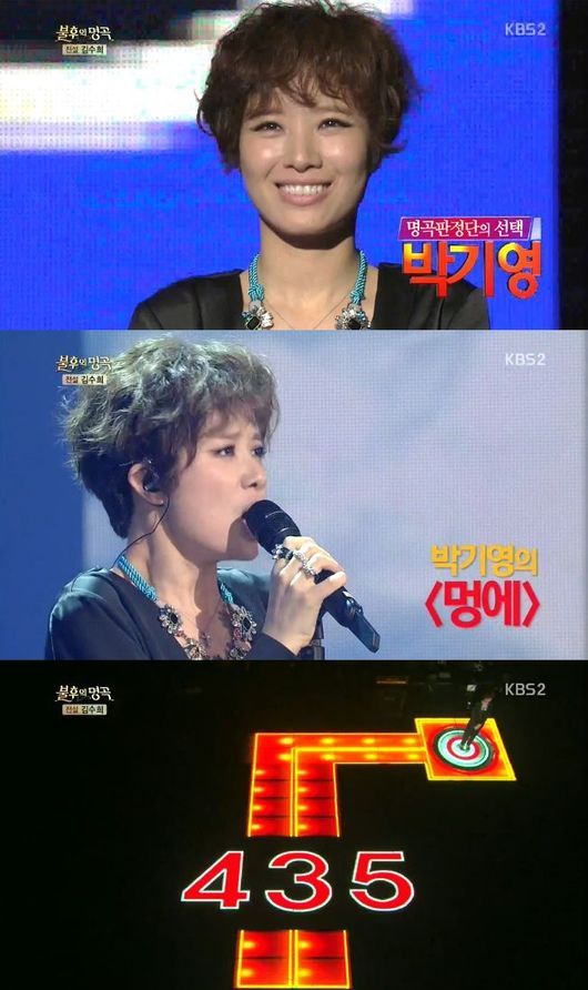 박기영이 28일 오후 방송된 KBS 2TV 예능프로그램 '불후의 명곡'에서 435표를 받아 김수희편의 최종우승을 차지했다.