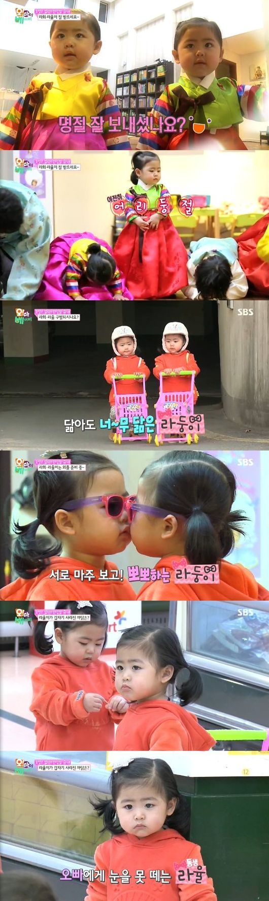 새해를 맞아 시청자들에게 새배를 하는 라둥이들의 모습은 저절로 '엄마, 아빠 미소'를 짓게 만들었다. 그 와중에 어리둥절한 표정으로 절을 하는 가족들을 구경하는 라희는 웃음을 자아냈다. 색동 저고리를 입고 손을 곱게 모으고 엄마 아빠가 시키는 대로 얌전히 절을 하는 라율이도 깜찍했다.