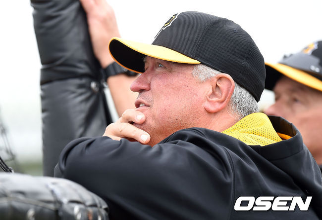 클린트 허들 감독이 선수들의 프리배팅을 지켜보고 있다.