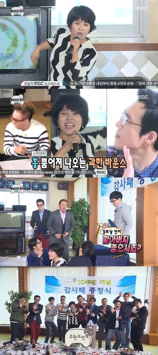이날 '무한도전'에는 10주년을 맞아 원년 멤버인 표영호, 이윤석, 김성수, 이켠, 윤정수 등이 한데 모여 즐거운 시간을 즐기는 모습이 담겼다.