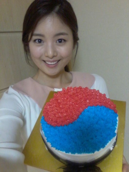 공개된 사진 속 한지우는 태극 문양의 케익을 손에 들고 환한 미소를 짓고 있다.