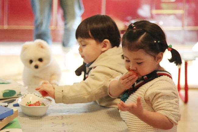 공개된 사진에는 ‘딸기홀릭’에 빠진 채유와 알렉스의 깜찍한 모습이 담겨있다. 채유와 알렉스의 딸기를 집은 고사리 같은 작은 손과 딸기를 먹는 야무진 입 그리고 오동통한 볼살이 시선을 '강탈'한다.