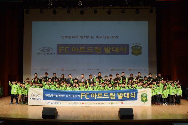지난 달 28일 전북도청에서 김충호 전북현대 대표이사, 송하진 전북 도지사, 최창규 35사단장, 김승수 전주시장, 박성일 완주군수, 현대자동차 임원과 1300여명의 전북현대 축구팬을 비롯해 ‘FC아트드림’에 선발된 아동 100명 함께 한 출정식에서 ‘FC아트드림’ 발대식을 가졌다.