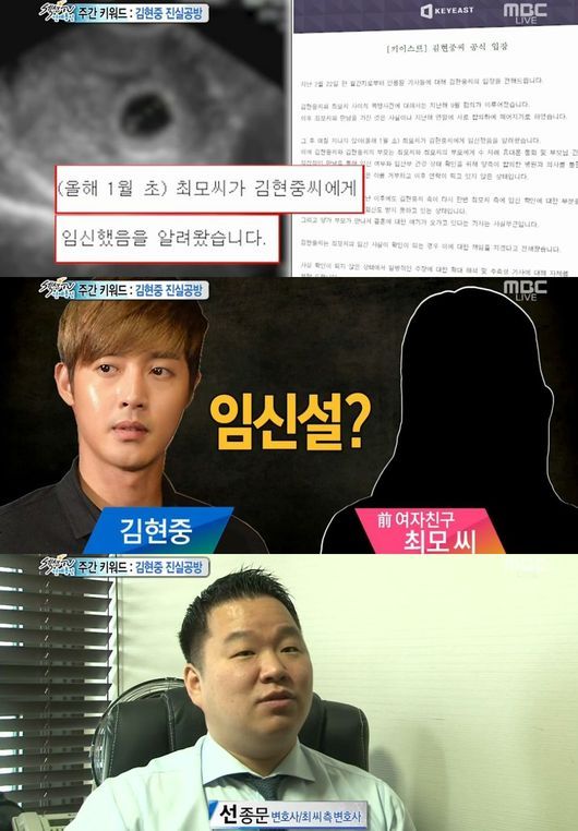 1일 방송된 MBC '섹션TV연예통신'에서는 최근 이슈의 중심이 된 김현중과 그의 전 여자친구 임신에 대해 다뤘다.