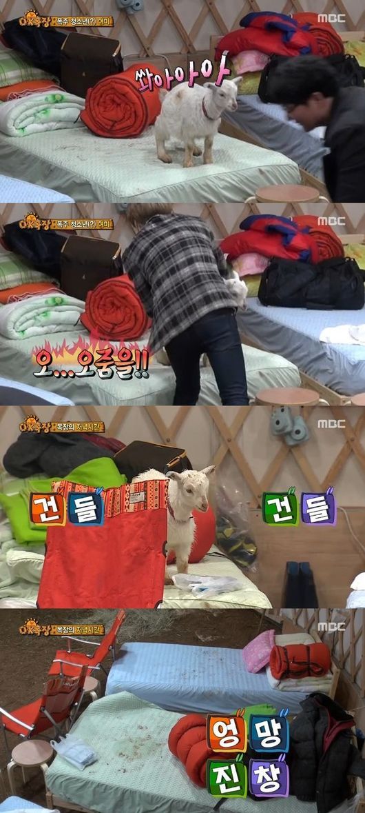 1일 오후 4시 50분 방송된 MBC '일밤-애니멀즈'에서 염소 여미가 은혁의 침대에 뛰어 올라 소변을 봤다.