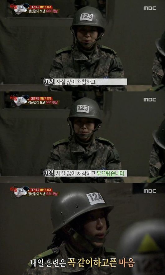 1일 오후 6시 10분 방송된 MBC '일밤-진짜사나이'에서 김지영과 강예원은 부상 때문에 전봇대 등반 등의 훈련을 받지 못했다.