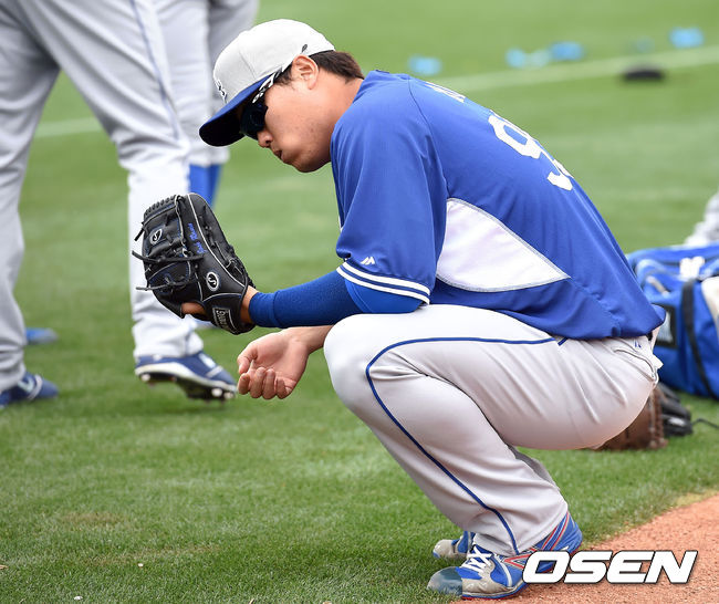 류현진은 지난 2월 25일 두 번째 불펜 피칭을 마친 후 등 부분에 불편함을 느꼈다. 2월 26일 MRI 진단결과 이상이 없었고 2월 28일에는 동료들과 함께 필드에 서지는 않았지만 트레이너와 함께 35개의 캐치 볼을 주고 받았다. / youngrae@osen.co.kr