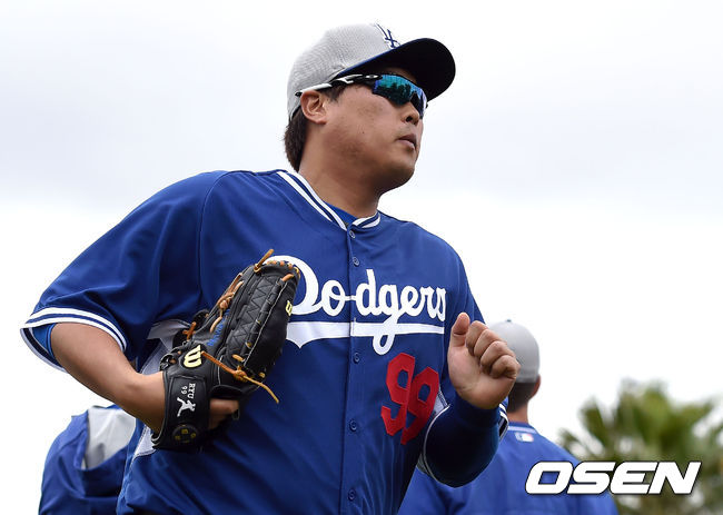 류현진은 지난 2월 25일 두 번째 불펜 피칭을 마친 후 등 부분에 불편함을 느꼈다. 2월 26일 MRI 진단결과 이상이 없었고 2월 28일에는 동료들과 함께 필드에 서지는 않았지만 트레이너와 함께 35개의 캐치 볼을 주고 받았다. / youngrae@osen.co.kr