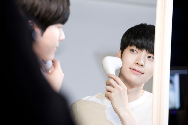 특히 공개된 사진 속에서 모두의 시선을 사로잡는 것은 바로 광채 나는 안재현의 ‘무결점 피부’. 촬영 중간 메이크업을 수정 받거나, 틈틈이 거울로 본인 모습을 확인 하는 등 생생한 현장 모습에도 우유빛 피부가 돋보인다.