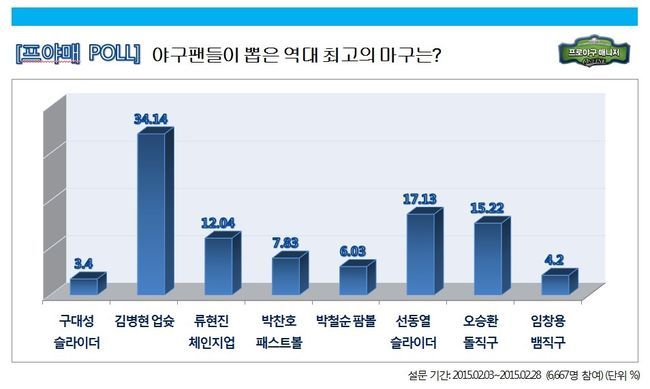 지난달 3일부터 28일까지 엔트리브는 총 6667명의 이용자를 대상으로 설문을 진행했다. 역대 투수 가운데 최고의 기량을 자랑하는 선수들이 대상이었다.