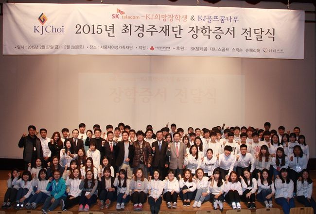 이날 증서를 받은 이들은 SKT-KJ희망장학생과 KJ골프꿈나무 각 50명 총 100명으로 올해 초 자기 소개서를 포함한 1차 서류 심사와 2차 가정 방문을 통해 선발되었다. KJ골프 꿈나무는 지난달 27일 오렌지듄스 CC에서 진행된 선발전을 포함하여 최종 선발된 학생들로 제 6기 꿈나무들이다.