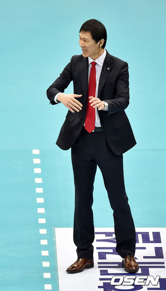 2일 오후 수원실내체육관에서 2014-2015 NH농협 V-리그 여자부 6라운드 현대건설과 IBK기업은행의 경기가 열렸다. 1세트 IBK기업은행 이정철 감독이 선수들에게 지시를 내리고 있다.