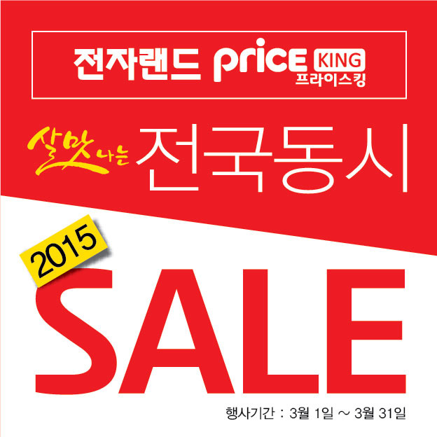 전자랜드프라이스킹(대표 홍봉철)은 푸짐한 캐시백과 다양한 사은품을 증정하는 '살맛나는 전국동시세일'을 3월 한달 간 전국 100여개의 매장에서 진행한다.