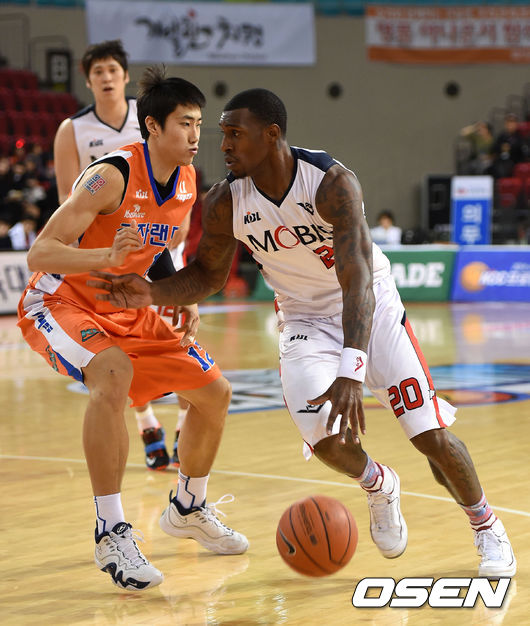 1쿼터 모비스 라틀리프가 드리블 돌파를 시도하고 있다.