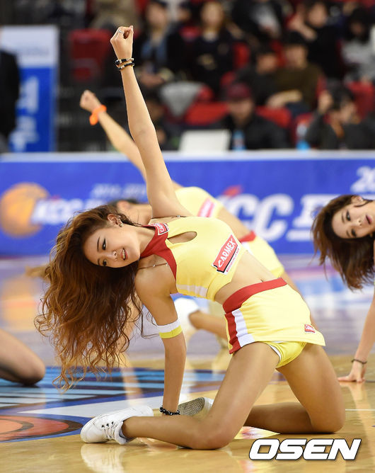 전자랜드 치어리더가 화려한 공연을 펼치고 있다.