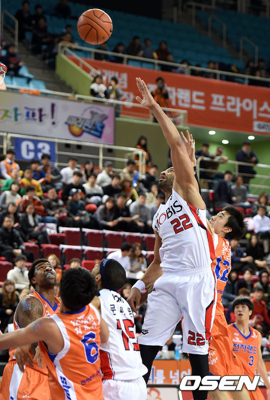 2쿼터 모비스 클라크가 슛을 시도하고 있다.