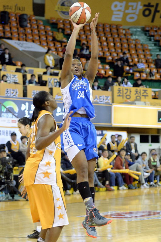 1쿼터는 21-21 팽팽한 동점. 우리은행이 샤데 휴스턴의 개인기를 앞세워 달아나면 KB스타즈가 비키바흐의 골밑 득점으로 추격하는 양상. 1쿼터 중반부터 김보미의 3점슛에 이어 정미란이 연속 3점슛을 터뜨리며 KB스타즈가 잠시 역전했지만 우리은행도 양지희의 골밑 득점으로 동점을 이뤘다.