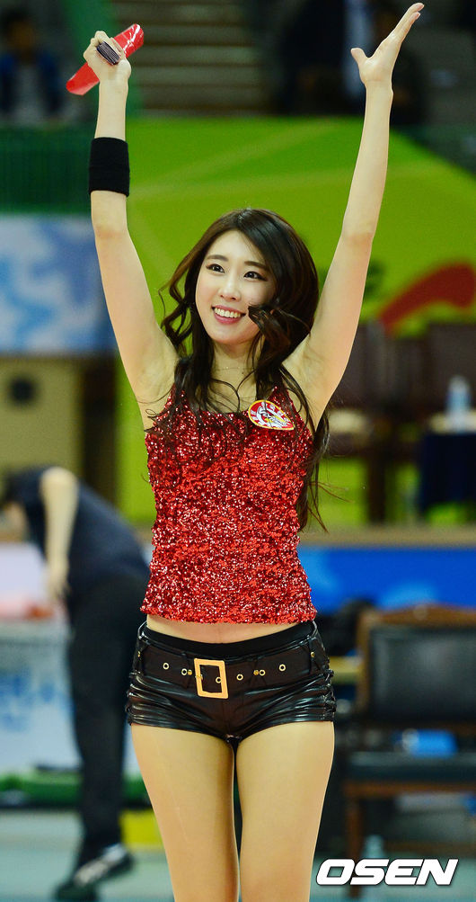 한국전력 치어리더,'섹시한 가죽팬츠차림으로 상큼응원'