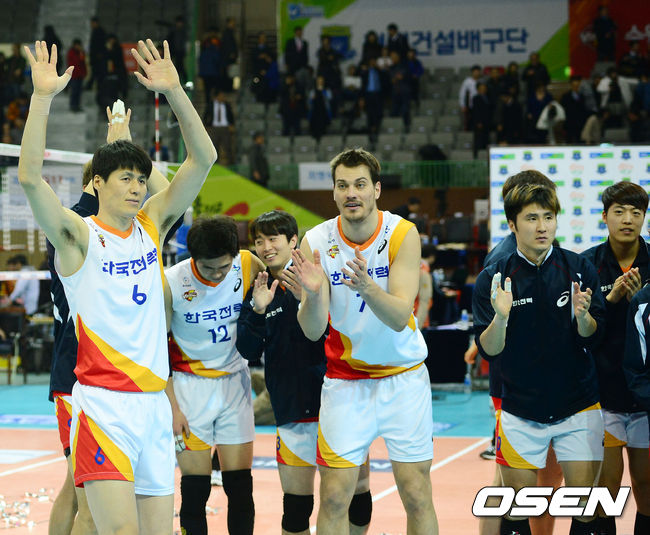 경기를 마치고 한국전력 선수들이 박수를 보내고 있다./rumi@osen.co.kr