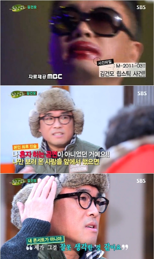이날 김건모는 이른바 '립스틱 사건'을 언급했다. 김건모는 지난 2011년 MBC 예능프로그램 '나는 가수다'에서 '립스틱 짙게 바르고'를 부른 후 입술에 빨간 립스틱을 바르고 퇴장해 화제가 됐다.