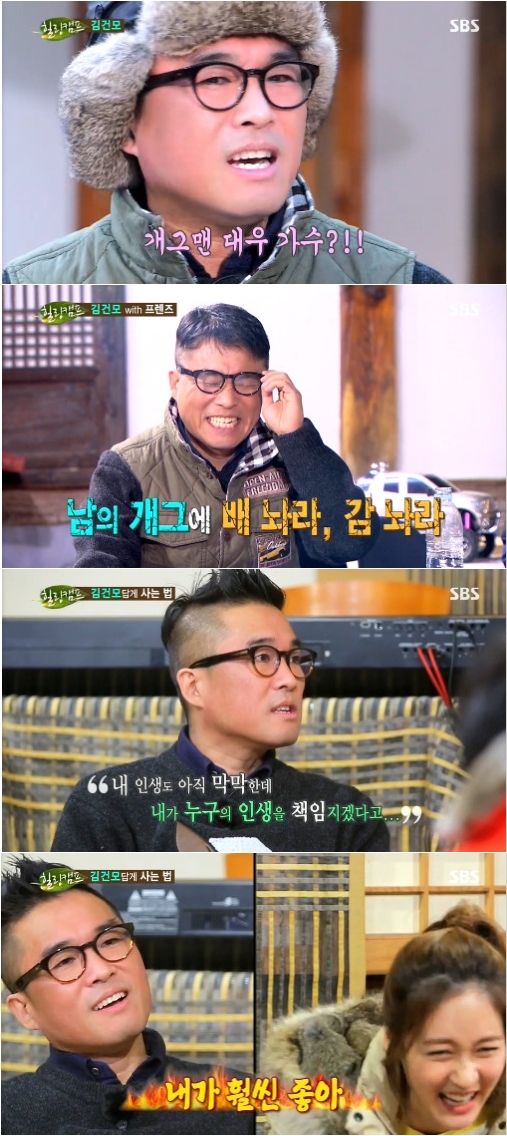 이날 김건모는 시종일관 유쾌했다. MC 성유리에 대한 사심을 과감히 드러내는가 하면, 자신을 위해 찾아준 친구들을 구박했다. 멋진 노래 실력이나 남다른 요리 실력을 보여준 뒤에는 엉뚱한 개그를 덧붙였다. 어머니와 건강검진에 대한, 사뭇 진지한 이야기를 꺼내놓은 듯 했지만 마무리는 신체 일부인 신장이 아닌, 키를 뜻하는 '신장이 좋지 않다'는 말장난으로 끝나는 식이었다.