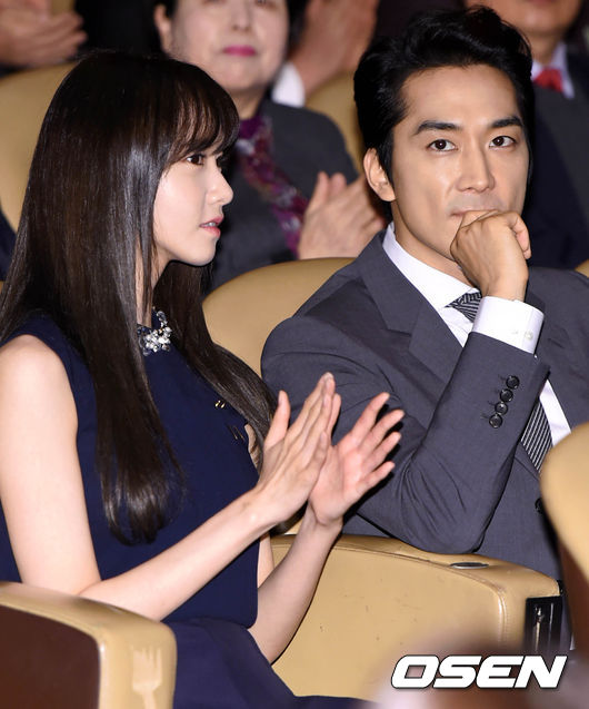 모범납세자로 선정되어 대통령표창을 수상하는 소녀시대 윤아와 배우 송승헌이 자리해 있다.