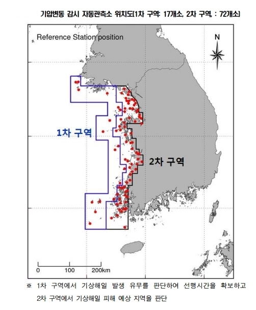 이에, 기상해일의 발생 가능성과 도달 해역을 정확하게 예측하기 위해 감시 분석대상을 3개 지점에서 연안 89개 지점으로 확대하여 먼바다에서는 기상해일 발생 유무를 판단하고, 연안에서는 기상해일 피해 예상 지역을 예측하는 시스템(붙임 2)으로 개선하였다.