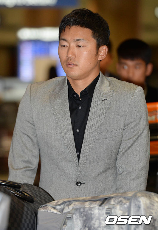 3일 오후 인천국제공항을 통해 일본에서 귀국한 안영명이 입국장을 빠져 나오고 있다.