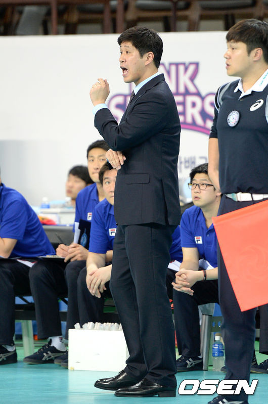 3세트 대한항공 김종민 감독이 작전을 지시하고 있다.