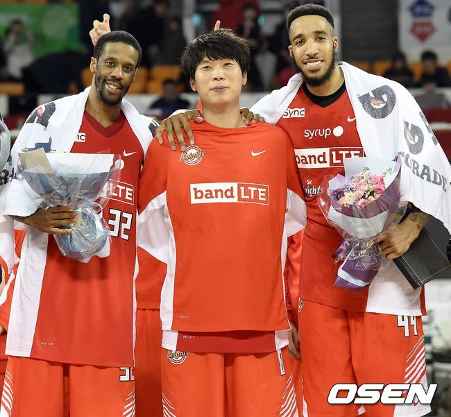 SK는 "아직 플레이오프가 남아 있는 시점이지만 홈 팬들에게 두 외국인 선수가 공식적으로 인사를 하는 자리를 마련하고 남아 있는 플레이오프에서의 선전도 당부하는 의미에서 이번 행사를 시행하게 됐다"고 설명했다.