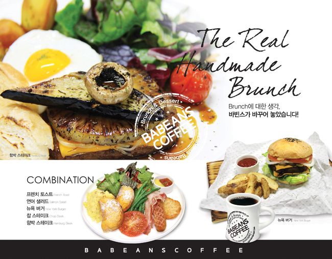프렌치토스트 컴비네이션, 찹스테이크 컴비네이션, 함박스테이크 컴비네이션, 뉴욕버거 컴비네이션, 연어샐러드 컴비네이션 등 5가지 메뉴가 준비 돼 있다. 각 메뉴에 따라 스테이크, 감자튀김, 샐러드, 볶음밥 등 다양한 음식을 하나의 메뉴로 맛보되, 브런치카페 특유의 여유로운 분위기에서 즐길 수 있다.