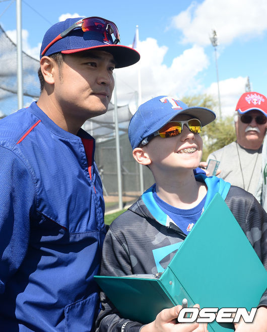추신수가 어린팬과 기념촬영을 하고 있다.