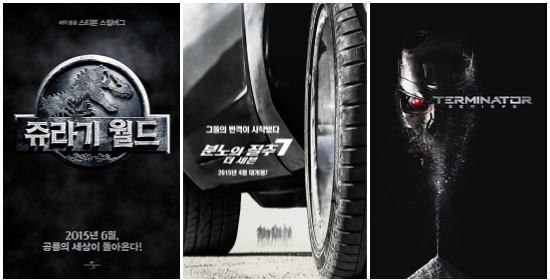 시리즈 블록버스터 세 편이 상반기 개봉을 앞두고 있다. 바로 '분노의 질주: 더 세븐'과 '쥬라기 월드', '터미네이터 제니시스'가 바로 그 주인공들이다.