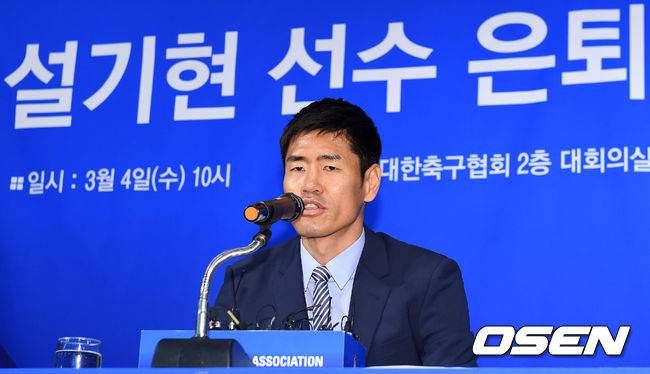 설기현이 4일 오전 서울 신문로 축구회관에서 열린 은퇴식 기자회견에서 질의응답 시간을 갖고 있다.