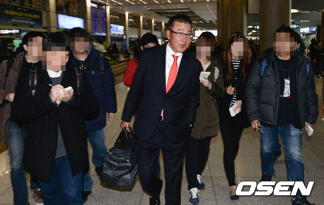김기태 감독이 급하게 공항을 빠져나가고 있다.