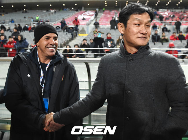 4일 오후 서울월드컵경기장에서 열린 AFC 챔피언스리그 조별리그 2차전 FC서울과 가시마 앤틀러스의 경기 시작전 최용수 감독이 가시마 안토니오 세레소 감독과 인사를 나누고 있다.