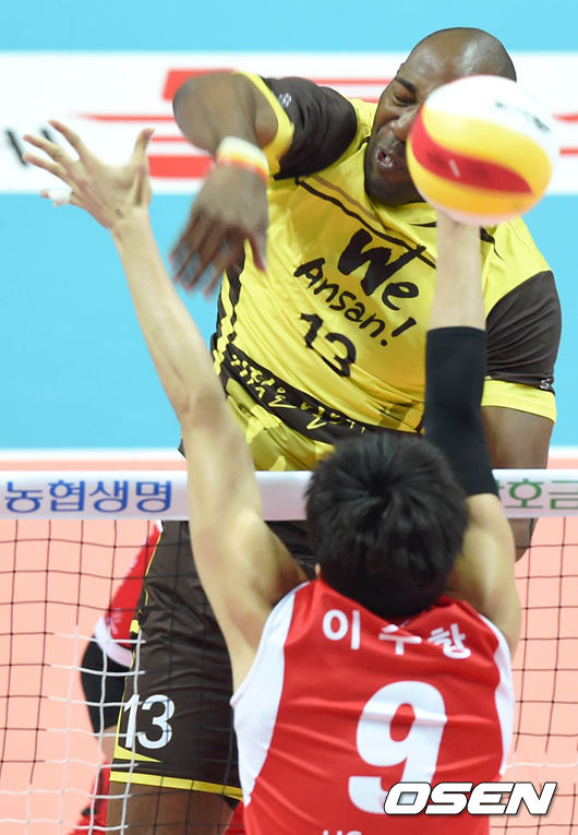 4일 오후 경기도 안산 상록수체육관에서 2014-2015 NH농협 V-리그 OK저축은행과 LIG손해보험의 경기가 열렸다.