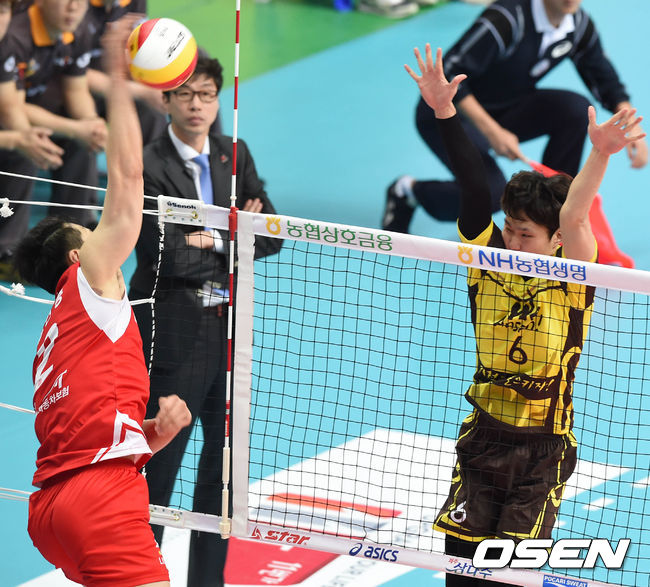 4일 오후 경기도 안산 상록수체육관에서 2014-2015 NH농협 V-리그 OK저축은행과 LIG손해보험의 경기가 열렸다.