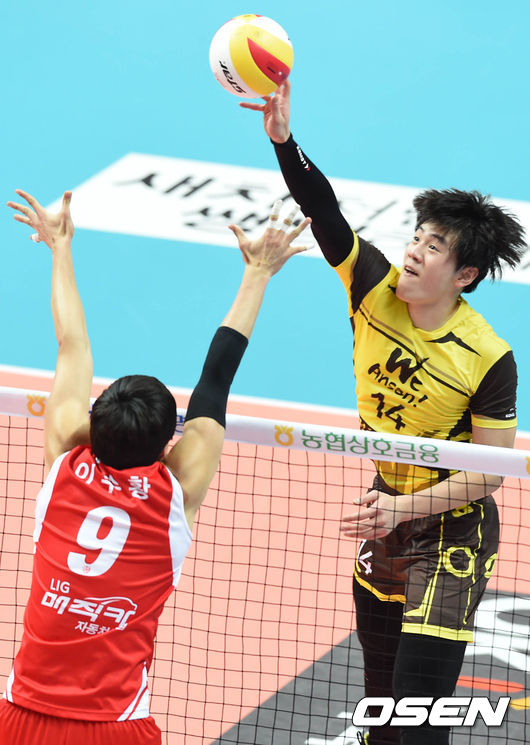 4일 오후 경기도 안산 상록수체육관에서 2014-2015 NH농협 V-리그 OK저축은행과 LIG손해보험의 경기가 열렸다.