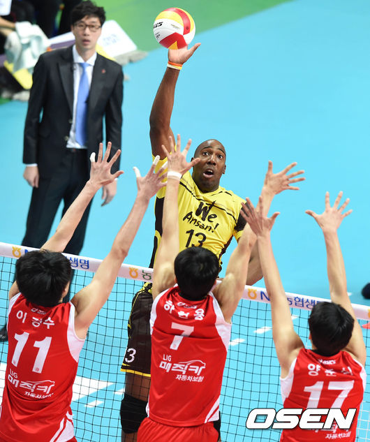 4일 오후 경기도 안산 상록수체육관에서 2014-2015 NH농협 V-리그 OK저축은행과 LIG손해보험의 경기가 열렸다.