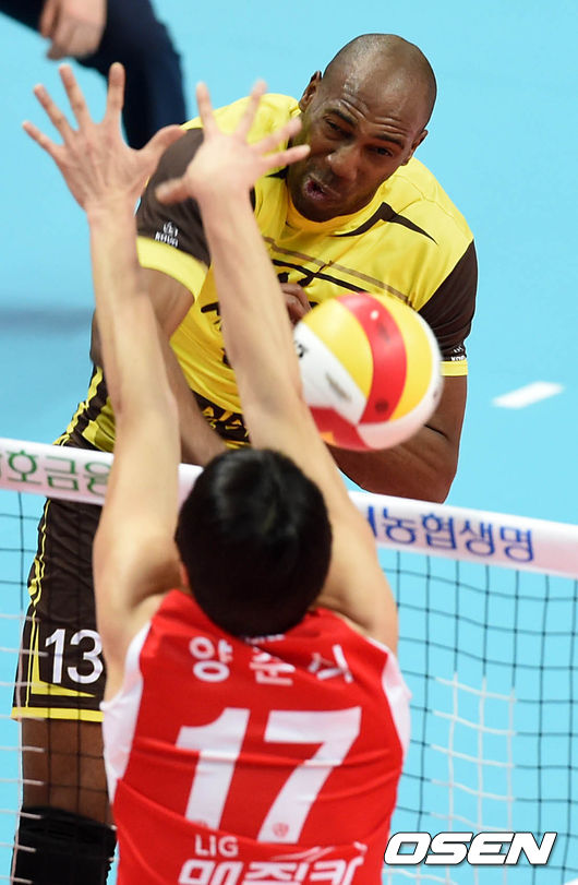 4일 오후 경기도 안산 상록수체육관에서 2014-2015 NH농협 V-리그 OK저축은행과 LIG손해보험의 경기가 열렸다.