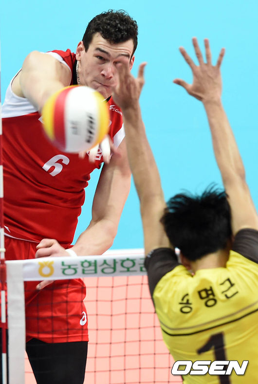 4일 오후 경기도 안산 상록수체육관에서 2014-2015 NH농협 V-리그 OK저축은행과 LIG손해보험의 경기가 열렸다.