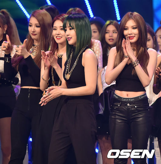포미닛이 이 날 1위를 한 빅스에게 박수를 보내고 있다.