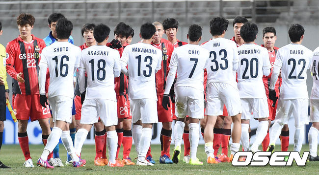 4일 오후 서울월드컵경기장에서 열린 AFC 챔피언스리그 조별리그 2차전 FC서울과 가시마 앤틀러스의 경기 종료 후 선수들이 인사를 나누고 있다.